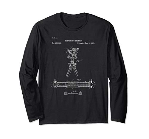 The surveyor’s transit, in old-fashioned sketch detail, on a comfy long-sleeved t-shirt. This is a nice gift idea for the surveyor in your life – the one who loves the nerd elements of surveying and also will appreciate the warmth offered by the long-sleeve tee.